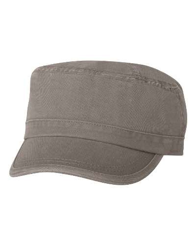 Popular unstructured military shape is bio-washed for a soft, distressed look. 100% bio-washed cotton chino twill. Pre-curved visor. Adjustable back with Velcro closure.
