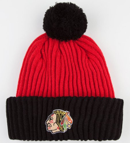 American Needle Dappy knit beanie. Contrast cuff with Chicago Blackhawks logo patch on front. Pom-pom on top. Imported.