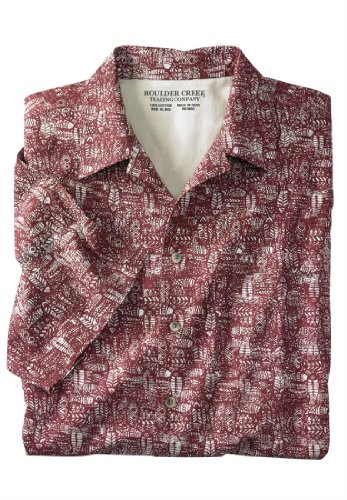 Boulder Creek Big & Tall Batik Print Camp Shirt, Maroon Print Big-3Xl