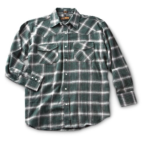 Canyon Guide Long - sleeved Western Flannel Shirt just rode into Dodge with style and comfort. Casual dress, comfortable ride. When temps dip, take the chill off by wearing this snazzy Flannel Shirt. Looks sharp. Feels soft. Sure to become your "old buddy" for taking on the Great Outdoors in style. Wear it for camping, fishing, chores and more. Ideal for kicking back around the campfire, too. Our buying power brings you a dynamite discount bargain! In 3 popular colors: Soft, 100% cotton fabric; Stylish point collar; Pearl-accent full-snap front; Pearl-accent snap cuffs; 2 front patch chest poc