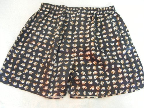 Men's 100% Thai Silk Boxer Shorts- Black with Small Ivory Elephants Design (SIZE LARGE 28-30)