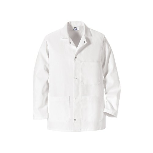 Style: Short Butcher Coat Fabric: 7 oz. TwillBlend: 65% polyester / 35% cotton Finish: Pre-cure durable press Closure: five grippers (snaps) Collar: One-piece, notched lapel Length: 30.75" (Based on size medium - back)Pocket: One left outside breast and two lower outside pocketsCare: Industrial WashManufactured by Red Kap