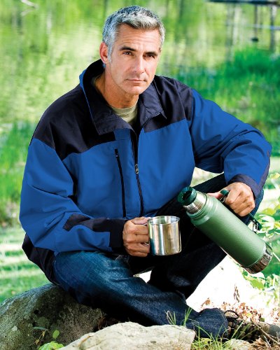 Tri-Mountain Men's Full Zip Windproof Microfiber Shell Jacket, IMPERIAL BLUE/NAVY, Large