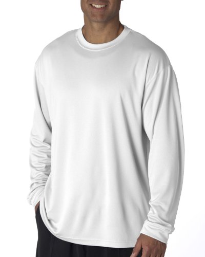 UltraClub Cool-N-Dry Men's Sport Long Sleeve T-Shirt , White, Large